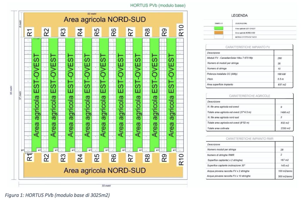L’Hortus PV è il primo agri-voltaico di dimensioni ridotte facilmente adattabile nei luoghi di realizzazione e gestibile sia dal punto di vista agricolo che elettrico.